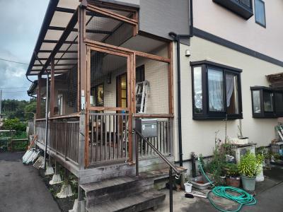 既設出入口ドアを再利用し建具を造作 下地を造ってネットの張替えと、